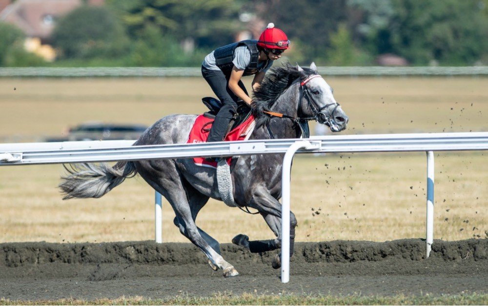 This month we catch up with Reflex who is a striking grey by El Kabeir who was trained with Charlie Fellowes until 2023 when we moved him on and trainer Kevin Frost picked him up. He trained on for another year before being retired and given a lovely home by Sarah Twigg who adores him. He is now enjoying life as an all-rounder and has even been to Aintree to enjoy some gallop training there! Please see below for a wonderful account of his new life: